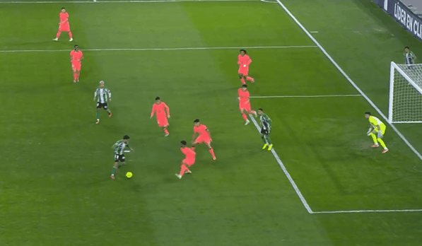 整个上半场,皇家贝蒂斯有一个完美的开局,但是在防守端中的几次不经意失误,再加上运气不佳,被对手抓住机会连续破门。